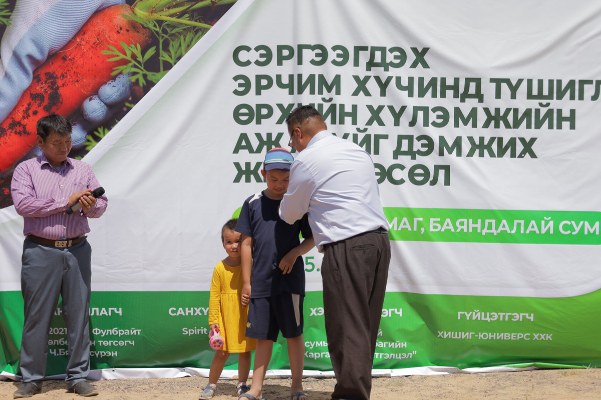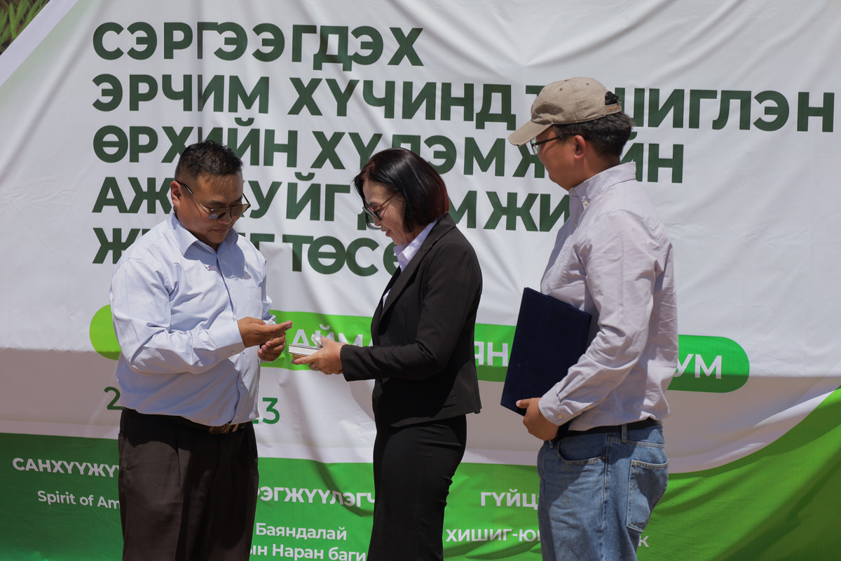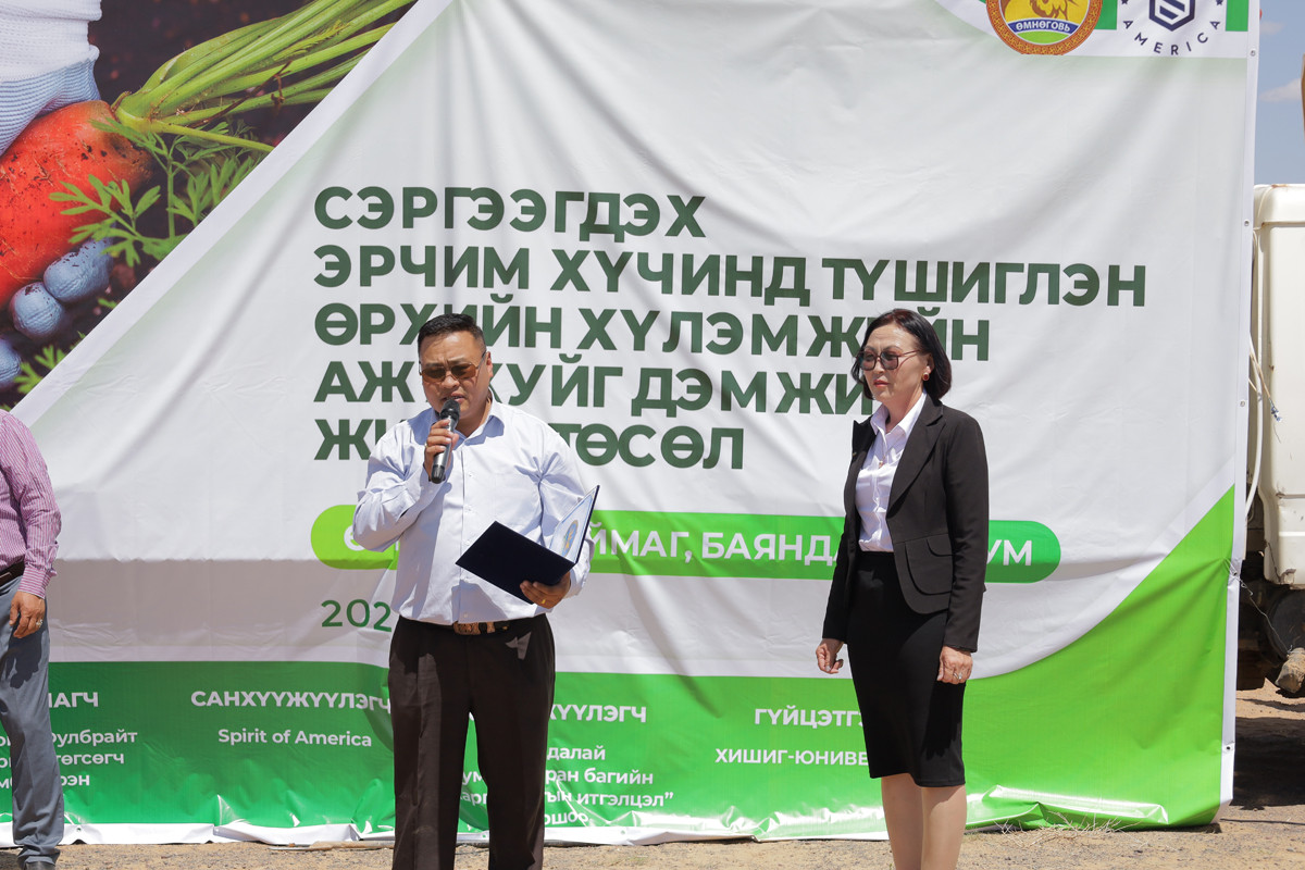 Өмнөговь аймгийн Баяндалай сумын иргэд санхүүжүүлэгч Spirit of America, усны тоног төхөөрөмж нийлүүлсэн “Хишиг юниверс”, хүлэмжийг нийлүүлсэн “Мөнх ногоон тал” компанийн хамт олонд талархлаа илэрхийлж байна.