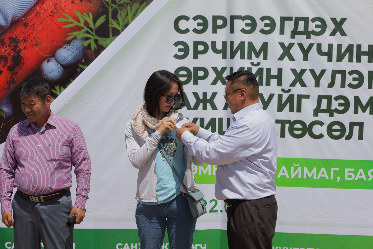 Хоршооны дарга Л. Бурмаа: “Энэ төслийн үр дүнд 100кг өргөст хэмх, 10кг гаруй улаан лооль борлуулаад байна. Хөрс тордох ажлаа сайн хийвэл энд ургахгүй ногоо гэж байхгүй.”